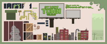 Sticky Town Tileset is a small project in which, through a series of small elements, you will be able to create the typical settings of a side scrolling platform title. At the moment, it only has one biome, quite limited. But, if it gets enough support, I'll keep expanding it in favor of building new biomes, assets, characters and much more.